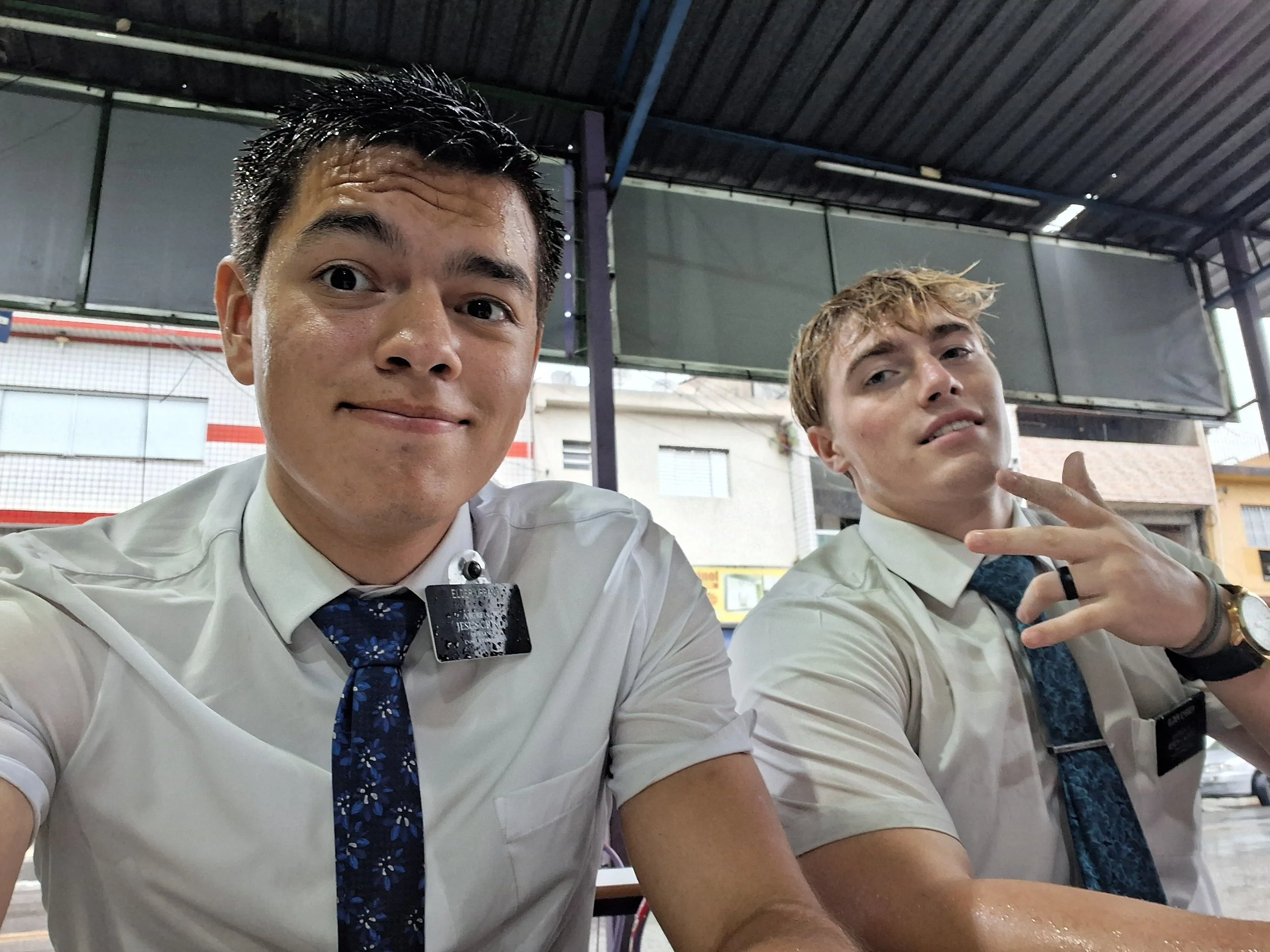 Okay, for context, his name is Elder Eysser but no one in Brazil can wrap their head around that so we always joke around and tell them to call him gelo (the Portuguese word for ice). Anyways, on Thursday, I had a divisão with him which was so much fun. Within 5 minutes we were laughing, smiling, joking, everything, and it reminded me what it's like to actually have joy while working. We also got SOAKED. Elder Eysser’s umbrella broke and mine was not big enough for the two of us so we both walked without. It was still a good day though. It was a nice escape from the days where I force myself to keep going and have to keep myself from dragging my feet. The sad part is the day flew by but it was definitely a much needed moral boost.
